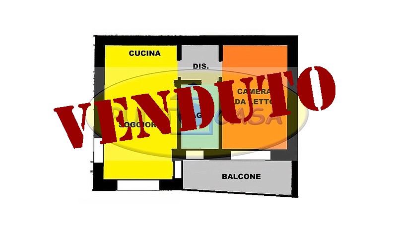 Soggiorno con accesso al terrazzino coperto, angolo cottura, disimpegno, camera da letto matrimoniale con accesso al terrazzino, bagno con doccia.